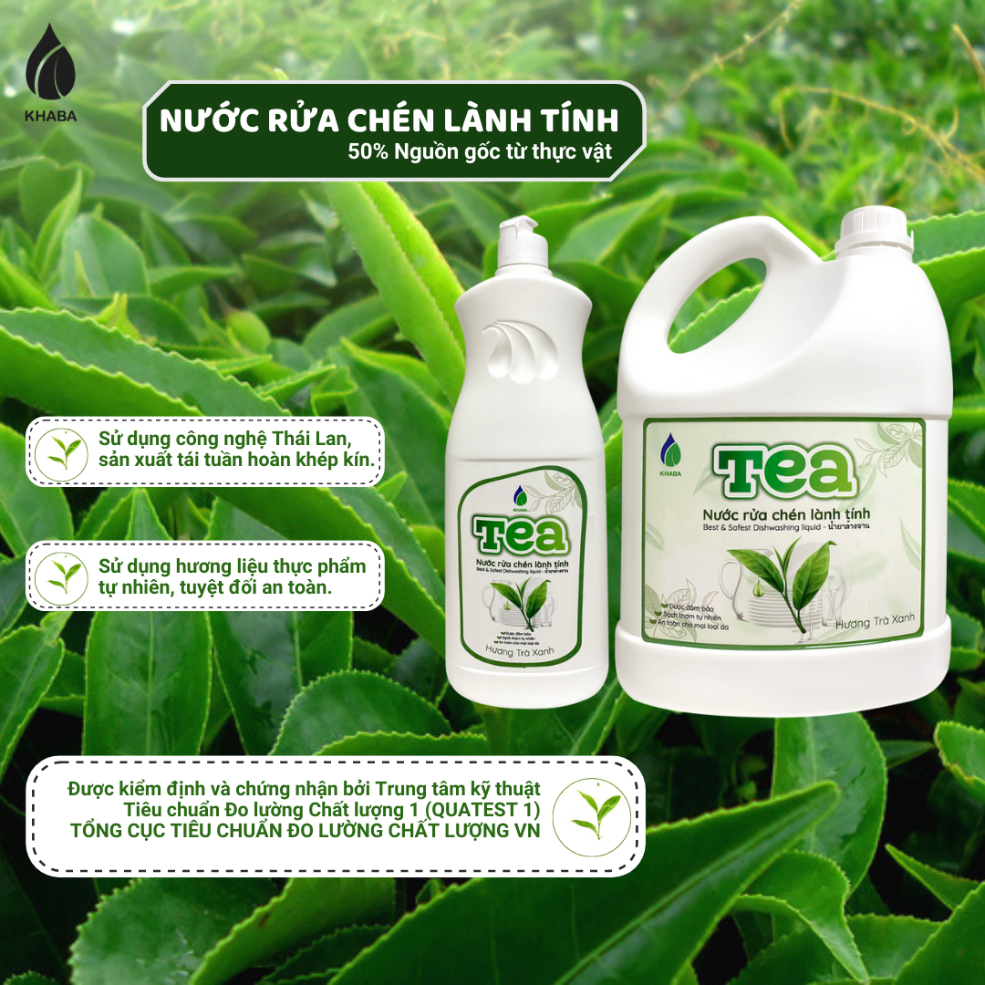 - Nước rửa chén lành tính TEA được sản xuất bởi công ty TNHH KHABA có nhà máy tại Minh Phú, Sóc Sơn, Hà Nội