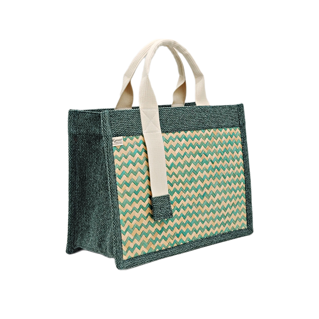 • Chất liệu: Cói đan kết hợp với vải canvas